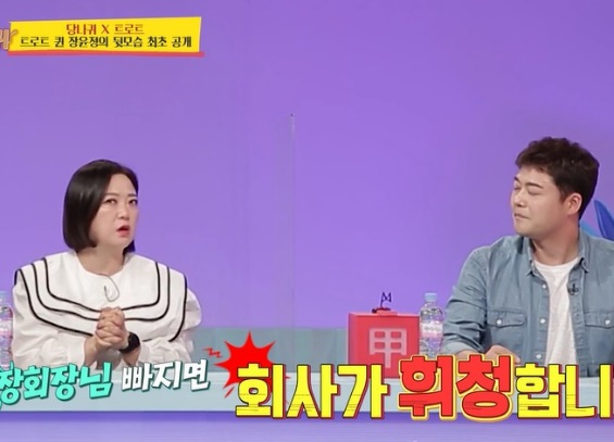 김숙은 "장회장님이 빠지면 회사가 휘청일 정도다. 기둥 하나 빠진다. 그에 비해 난 개미다. 장회장님이 한방이면 저는 개미처럼 (번다)"고거들어 웃음을 자아냈습니다.